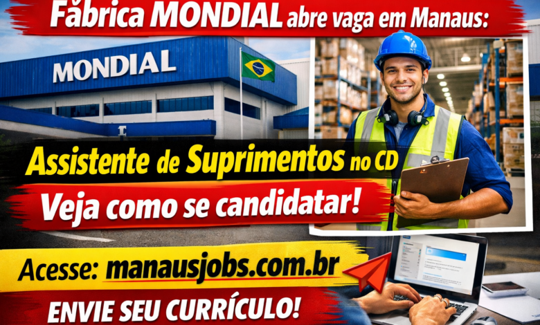 Meta Description: A fábrica MONDIAL está com vaga de emprego em Manaus para Assistente de Suprimentos (Expedição). Veja requisitos, atividades e como enviar seu currículo de forma simples.
